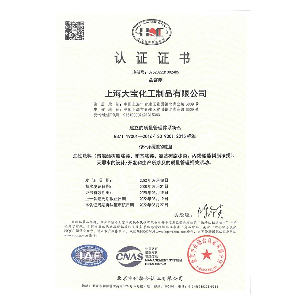 ISO9001質(zhì)量管理體系認(rèn)證(上海大寶)