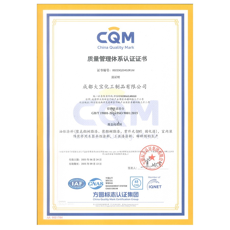ISO 9001質(zhì)量管理體系認(rèn)證(成都大寶)