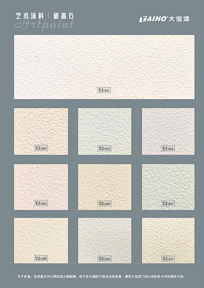 采用特殊工藝,獨(dú)創(chuàng)出細(xì)膩清晰的紋理和粗糲質(zhì)感,手感柔和,賦予空間豐富多變的天然砂質(zhì)墻面效果。其紋理縱橫交錯,可實現(xiàn)“菊花型”、“七字形”、“橫豎型”、“亂紋”、“斜紋”等多種效果,雅晶石在簡潔中流露出深思,在低調(diào)中彰顯奢華,是成熟與激情的理智結(jié)合,既精彩紛呈,又沉穩(wěn)含蓄。