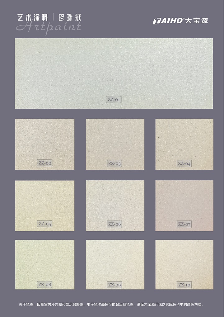 珍珠絨藝術涂料以優質珠光顏料為基礎,結合環保樹脂乳液的黃金比例調制而成。其以水作為分散介質,施工過程中僅揮發水分,不含任何苯、甲醛等有害物質,無毒無害,讓家人住得更安心。