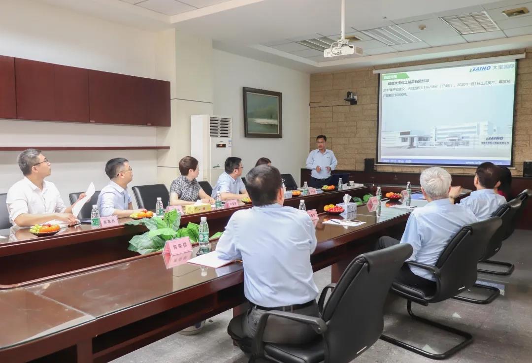 參觀結束后,雙方召開了座談會議。大寶化工陳總向孫會長和北新建材王董事長一行的到來表示熱烈的歡迎。就企業發展、產品趨勢、管理創新向與會嘉賓進行介紹。