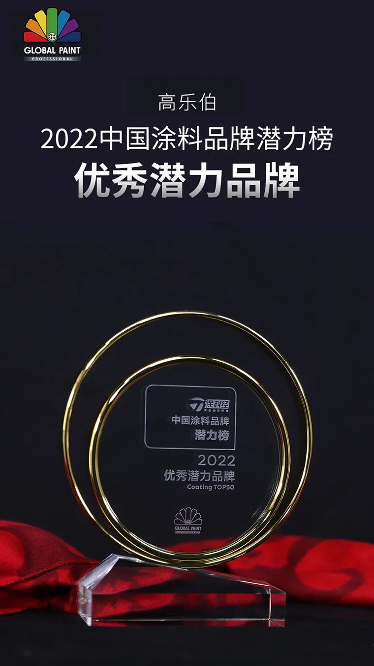 歷經(jīng)層層評(píng)審,高樂伯憑借著過硬的品牌實(shí)力和優(yōu)秀的產(chǎn)品質(zhì)量,從眾多涂料品牌中脫穎而出,被評(píng)為“2022優(yōu)秀潛力品牌”!