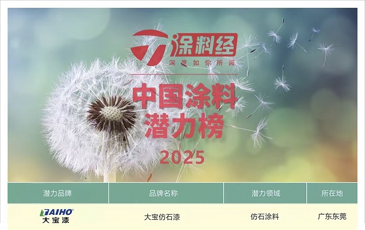 2月12日,備受行業(yè)矚目的“2025中國涂料品牌潛力榜”正式揭曉,大寶仿石漆憑借其卓越的產(chǎn)品品質(zhì)及強勁的市場表現(xiàn),成功入選該榜單,標志著大寶仿石漆在涂料市場的發(fā)展?jié)摿Λ@得了行業(yè)的高度認可。