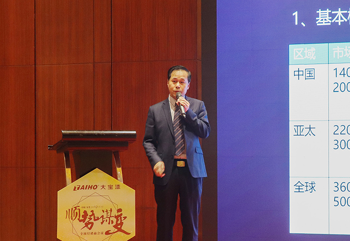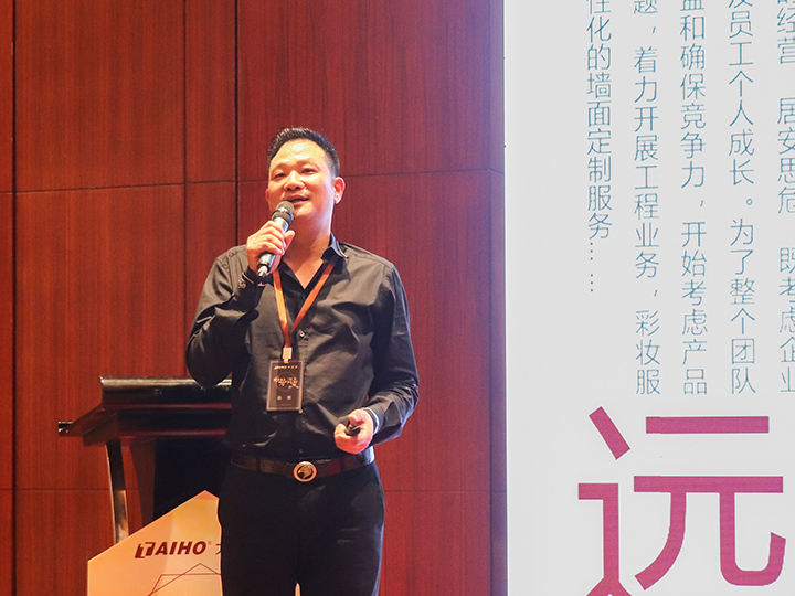 隨后,家裝事業(yè)部經(jīng)理黃文敏作家裝漆總結(jié)報(bào)告。他通過成功經(jīng)營(yíng)案例、大寶漆2019年市場(chǎng)布局為經(jīng)銷商加油打氣。他指出,公司將通過內(nèi)部整合、外部資源運(yùn)用,和經(jīng)銷商協(xié)同謀贏,再創(chuàng)佳績(jī)。