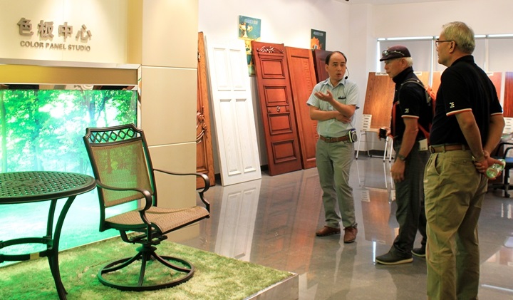 家具公會(huì)陳昌秀理事長(zhǎng)(左一)參觀色板中心
