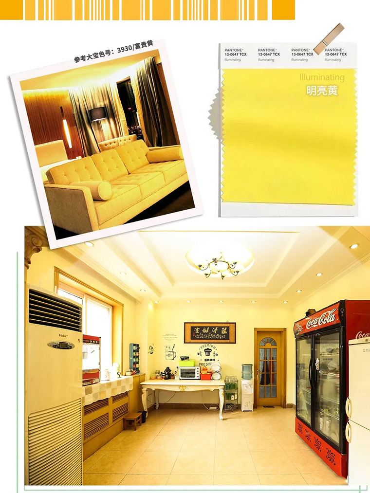 亮麗黃的明亮具有溫暖的意義,就像灑在身上的陽光來喚醒人們對未來的期待如果快樂有顏色,那一定會是黃色,在任何暗沉的顏色當(dāng)中一旦加入黃色的點(diǎn)綴,整個空間和氛圍,就好似有了一股生命力。在歷經(jīng)一年的艱難后,明亮的黃色喚起我們對未來的渴望和樂觀的心態(tài)。